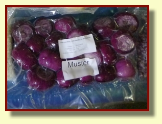 Zwiebelstreifen noch ohne Aufgußfertige Kiste mit Zwiebelstreifen im Aufguß