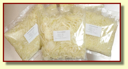 frische, geschnittene Zwiebelringe und Zwiebelwürfel in Kleinpackungen